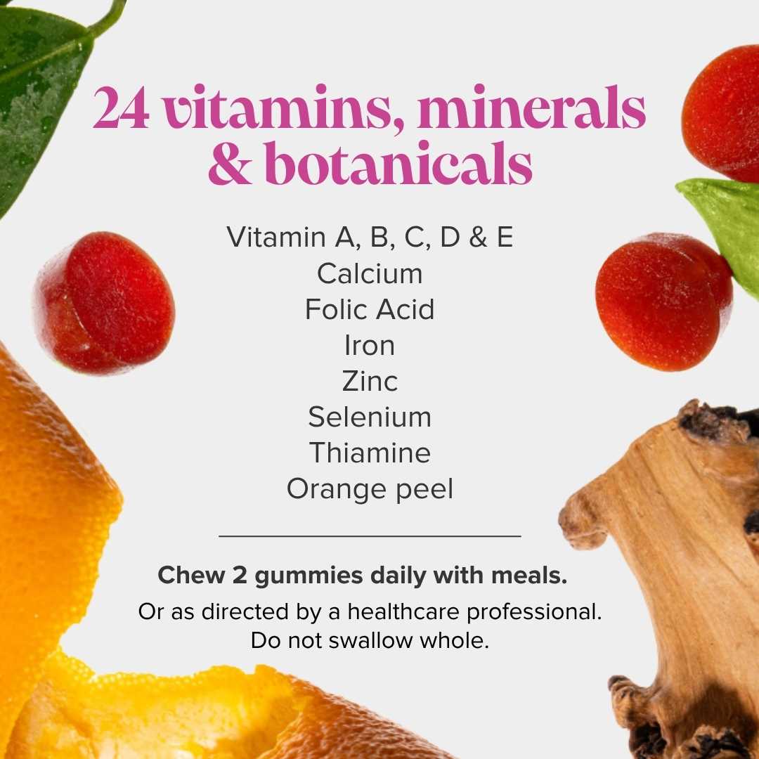 Packed with 24 essential vitamins, minerals, and botanicals including vitamins C, D, E, B complex, calcium iodine, and zinc.